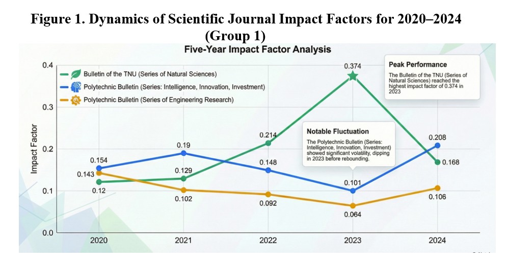 Analysis of the dynamics for 2020–2024 revealed an increase in the impact factor relative to the 2020 level for four of the publications considered.