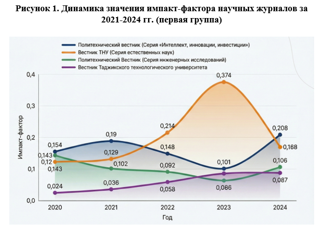 Анализ динамики за 2020–2024 гг. выявил рост импакт-фактора относительно уровня 2020 года у четырёх рассматриваемых изданий.